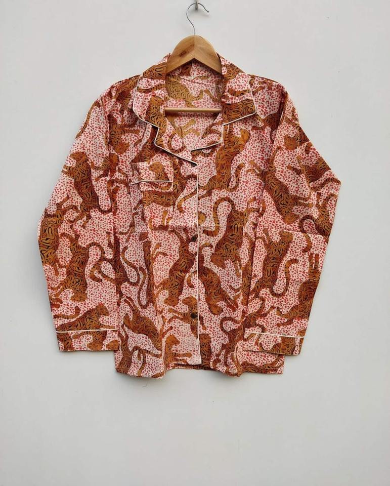 ชุดนอนผ้าฝ้ายลายเสือดาวทำมือพร้อมกระเป๋า