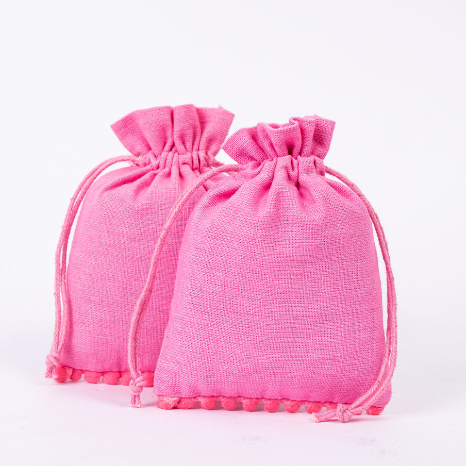 กระเป๋าผ้าฝ้ายสีชมพูอ่อนทำด้วยมือขนาดเล็กพิมพ์โลโก้ที่กำหนดเองสำหรับงานอีเวนต์แบรนด์ขายปลีก