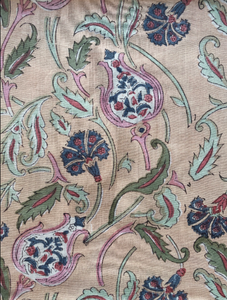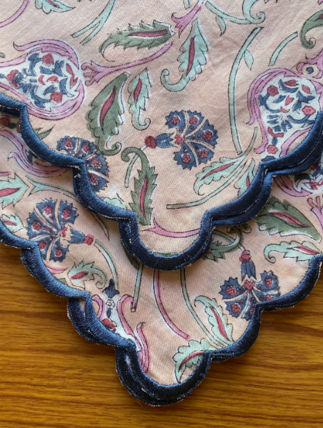 ผ้าเช็ดปากผ้าฝ้ายปักลายสีชมพูแซลมอนอ่อน สีเขียวรัสเซีย สีน้ำเงินปรัสเซีย ทำด้วยมือ พิมพ์ลายบล็อกอินเดีย