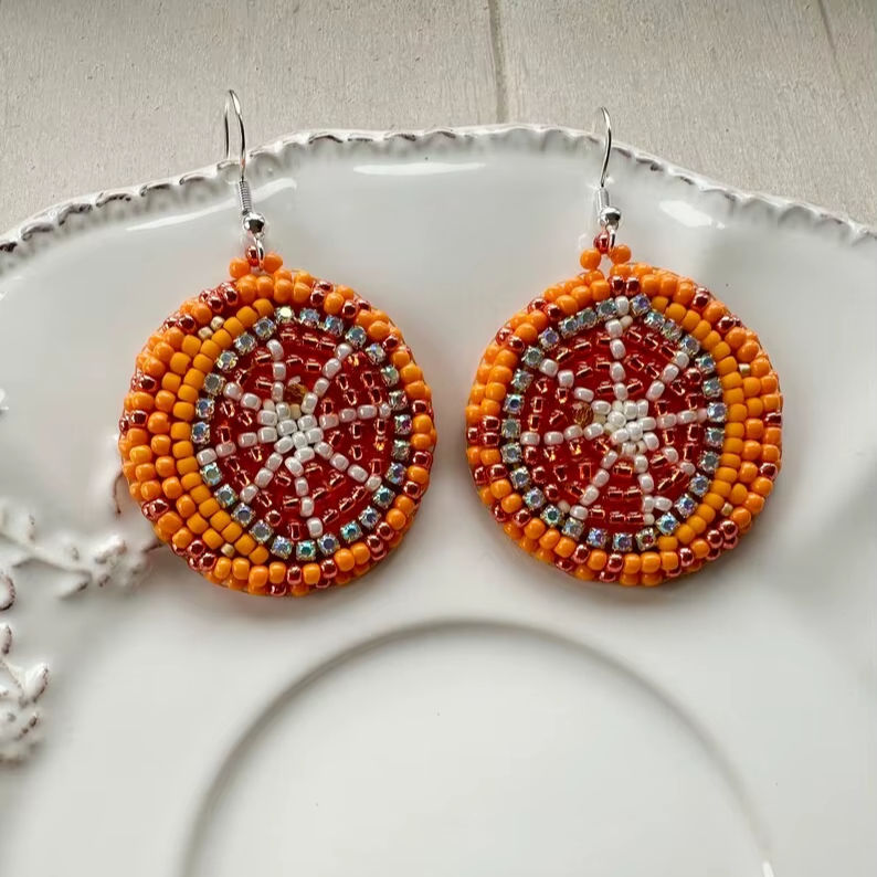 ต่างหูรูปดาวคริสต์มาสทรงรี ทำมือ น้ำหนักเบา ประดับด้วยลูกปัดฝ้าย ดีไซน์งานปักประดับลูกปัดหลากสีสัน ลายซานตาคลอส