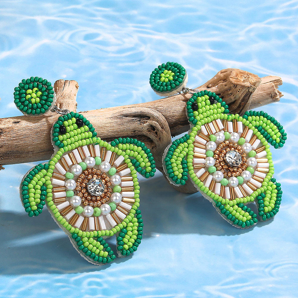 เครื่องประดับลูกปัดข้าวแฟชั่น งานแฮนด์เมด น้ำหนักเบา ดีไซน์คลาสสิก ประดับเพชรและมุก รูปเต่าทะเล รับทำตามสั่ง พร้อมสลักโลโก้ คุณภาพสูง