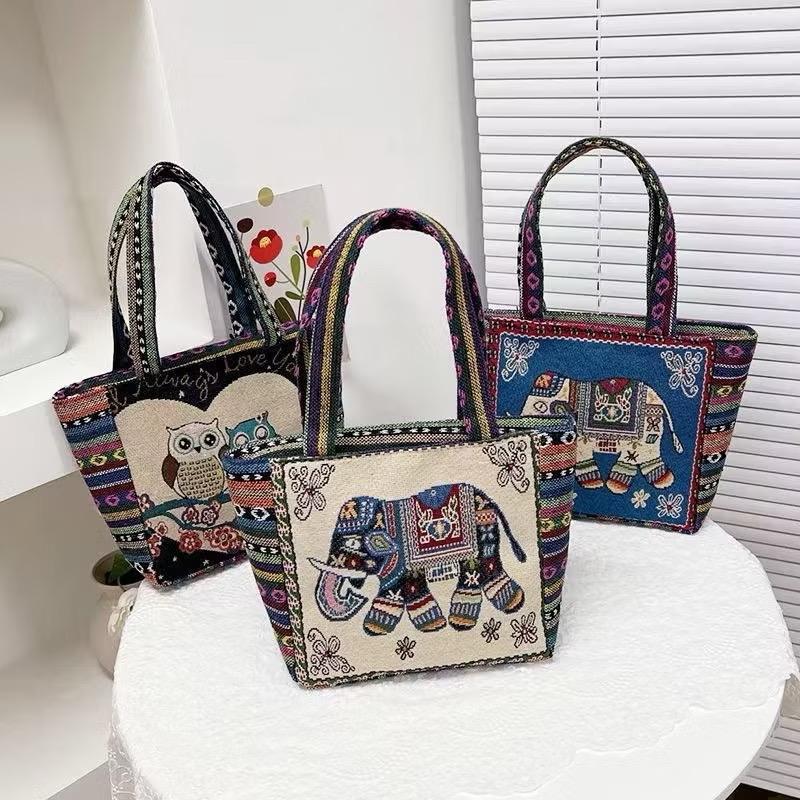 กระเป๋าสะพายผ้าฝ้ายทอลายการ์ตูนสไตล์โบฮีเมียน ทำมือ สำหรับแมวตัวเล็ก กระเป๋าคาดลำตัวขนาดมินิ เสื้อผ้าประจำภูมิภาค