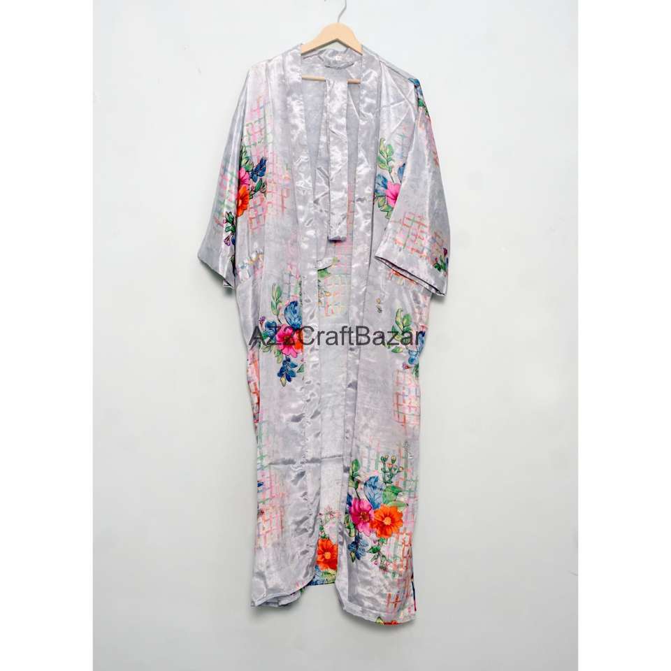 ทำด้วยมือชุดคลุมผ้าไหมแขนยาวสำหรับงานแต่งงานและเลานจ์ของผู้หญิงหรูหราคอวีเชือกผูกปากถุงปิดเรียบ100% ผ้าไหมของขวัญของเธอ