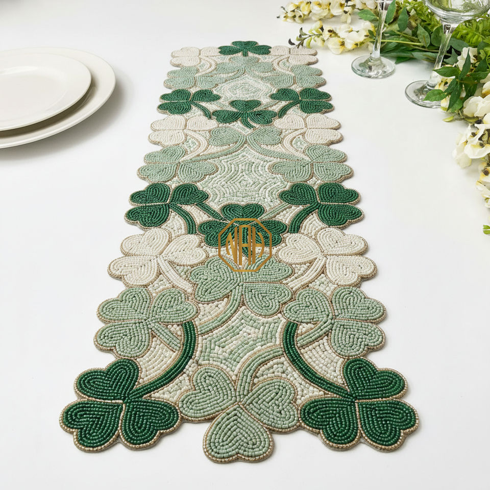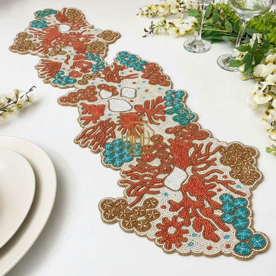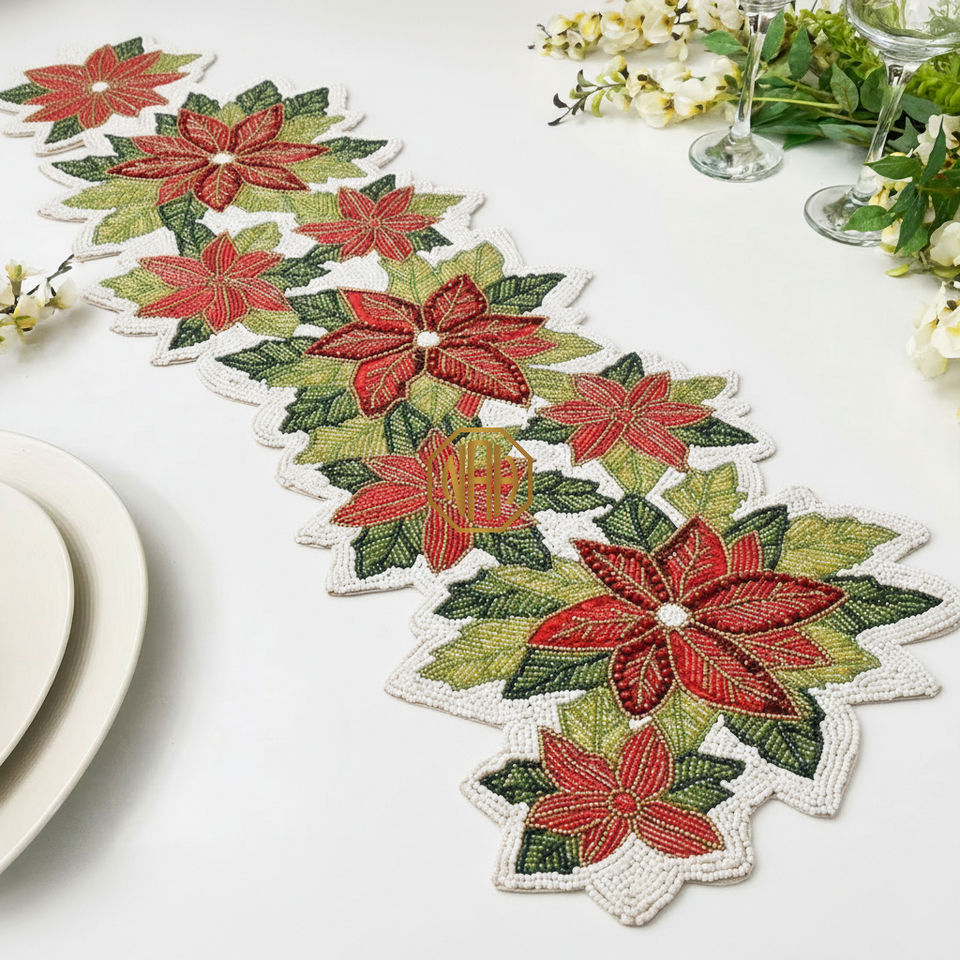ผ้าปูโต๊ะปักลายลูกปัดหรูหรา ขนาด 36 นิ้ว ทำด้วยมือ สำหรับตกแต่งงานปาร์ตี้คริสต์มาส