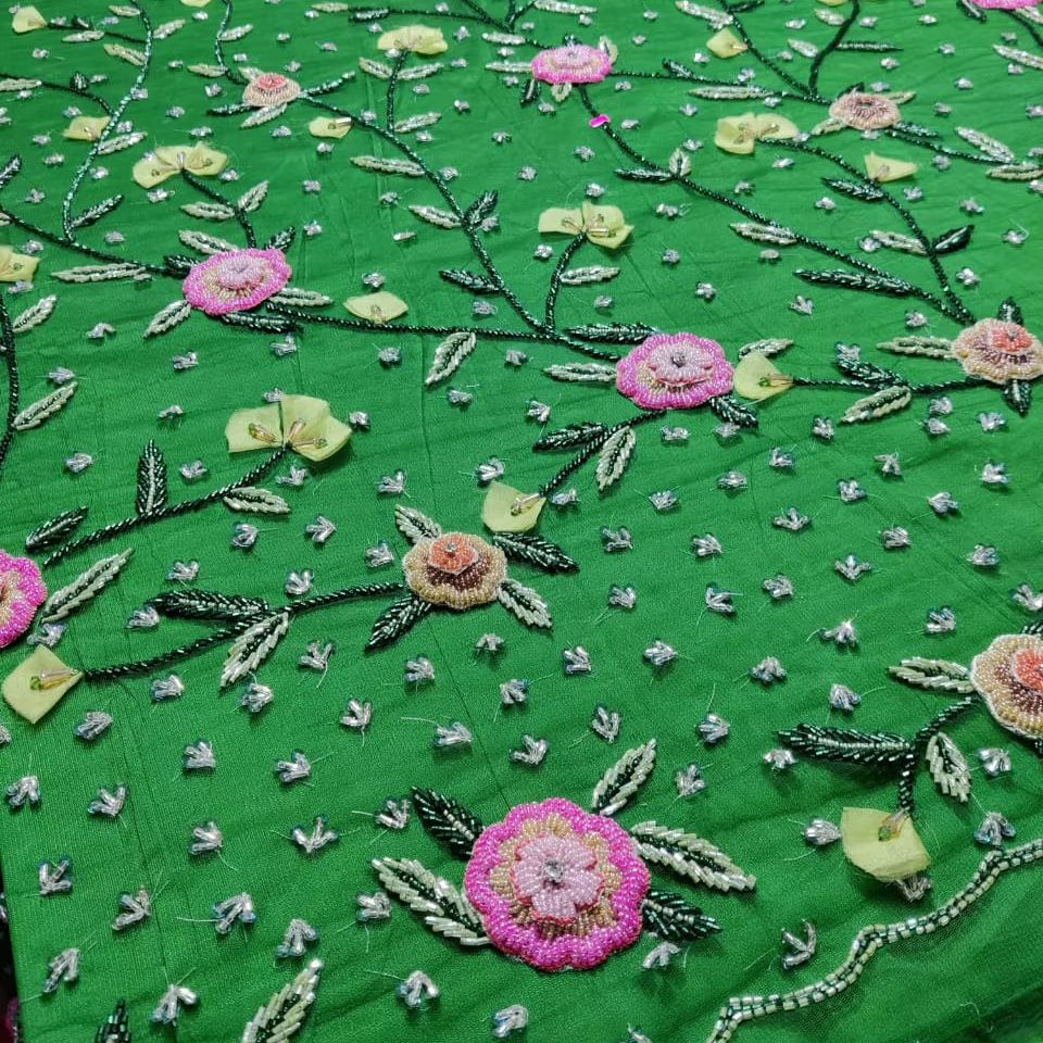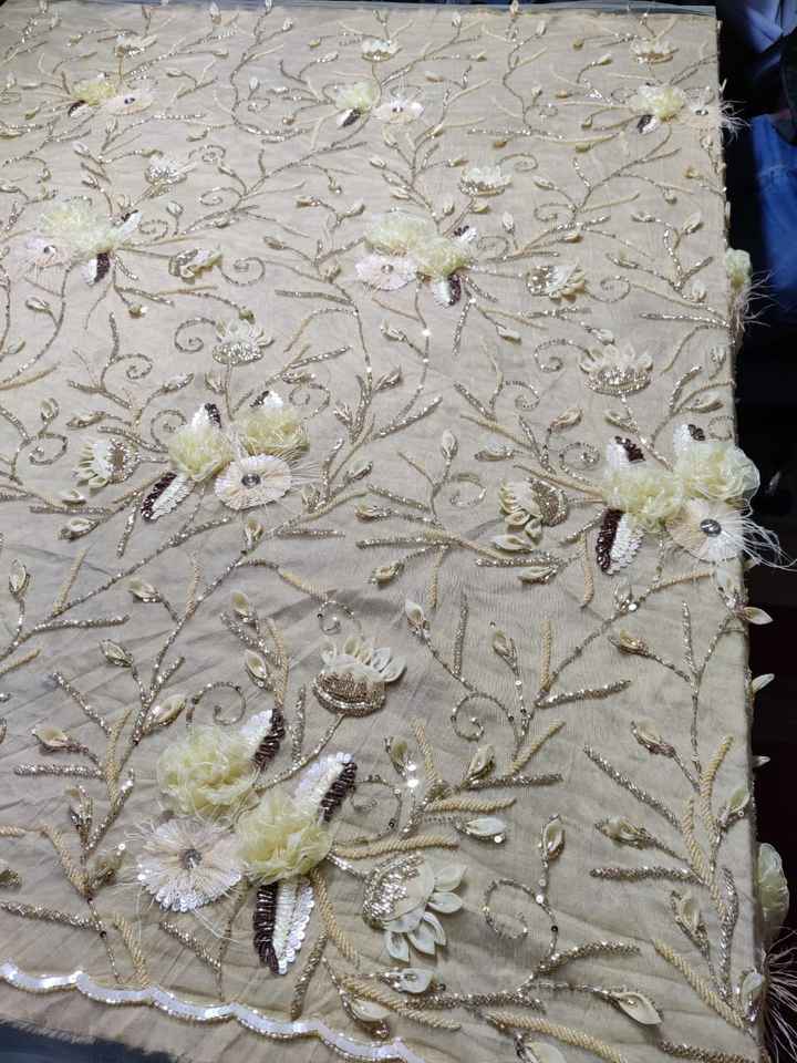 ผ้าตาข่ายปักลูกปัดหรูหราทำมือจากอินเดีย ดีไซน์ใหม่ ระบายอากาศได้ดี เหมาะสำหรับชุดงานเลี้ยง ชุดแต่งงานสำหรับผู้หญิง เทคนิคการผลิตแบบไม่ถักทอ