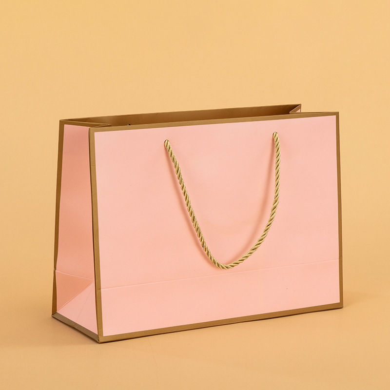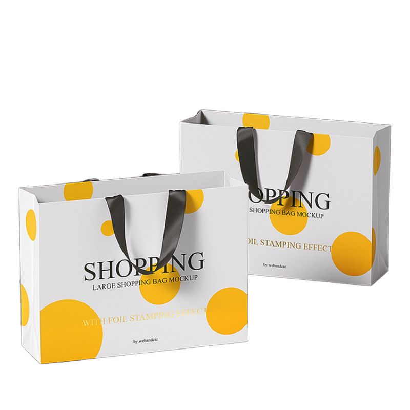 ถุงกระดาษคราฟท์สีน้ำตาลสุดหรูทำด้วยมือจับหน้าจอริบบิ้นผิวพิมพ์ลายสำหรับเสื้อผ้าของขวัญบรรจุภัณฑ์ช้อปปิ้งตามสั่ง
