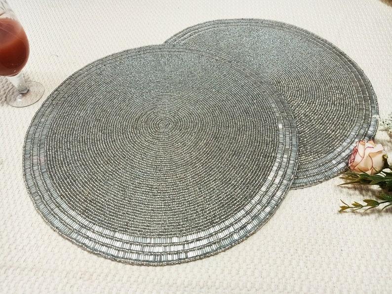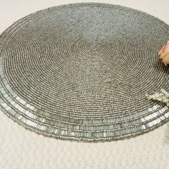 แผ่นรองจานลูกปัดทรงกลมทำมือ หรูหรา เป็นมิตรกับสิ่งแวดล้อม สำหรับใช้ในบ้าน สำนักงาน รับประทานอาหาร งานเลี้ยง งานแต่งงาน จากอินเดีย