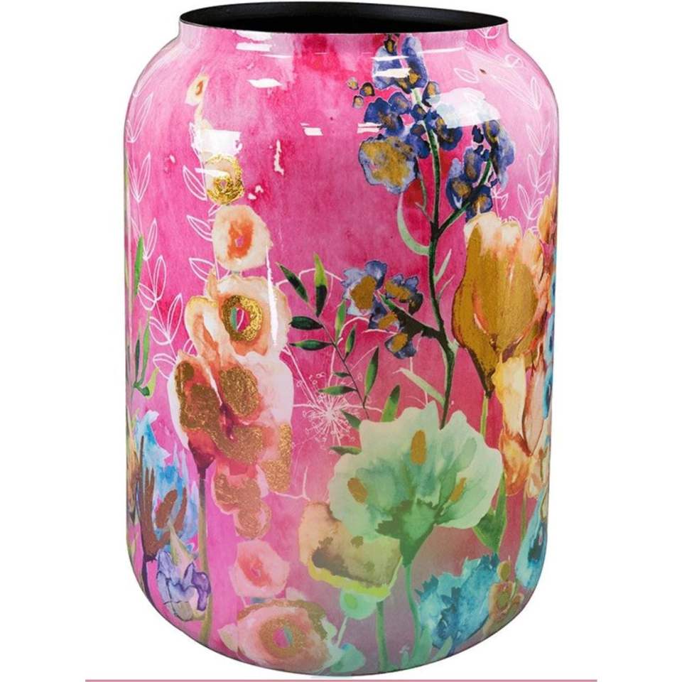 แจกันโลหะเคลือบลายดอกไม้หรูหราทำมือ สีชมพูสดใส กระถางดอกไม้ขนาดใหญ่ สำหรับตกแต่งสวนในร่มและกลางแจ้ง ของตกแต่งบ้าน
