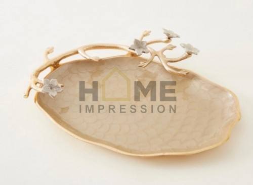 ถาดเสิร์ฟของบนโต๊ะโลหะเคลือบทองหรูหราทำด้วยมืออุปกรณ์ร้านอาหารสุดหรูใหม่สำหรับซัพพลายเออร์ขายส่ง