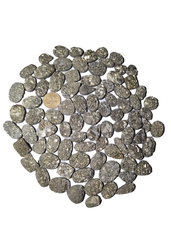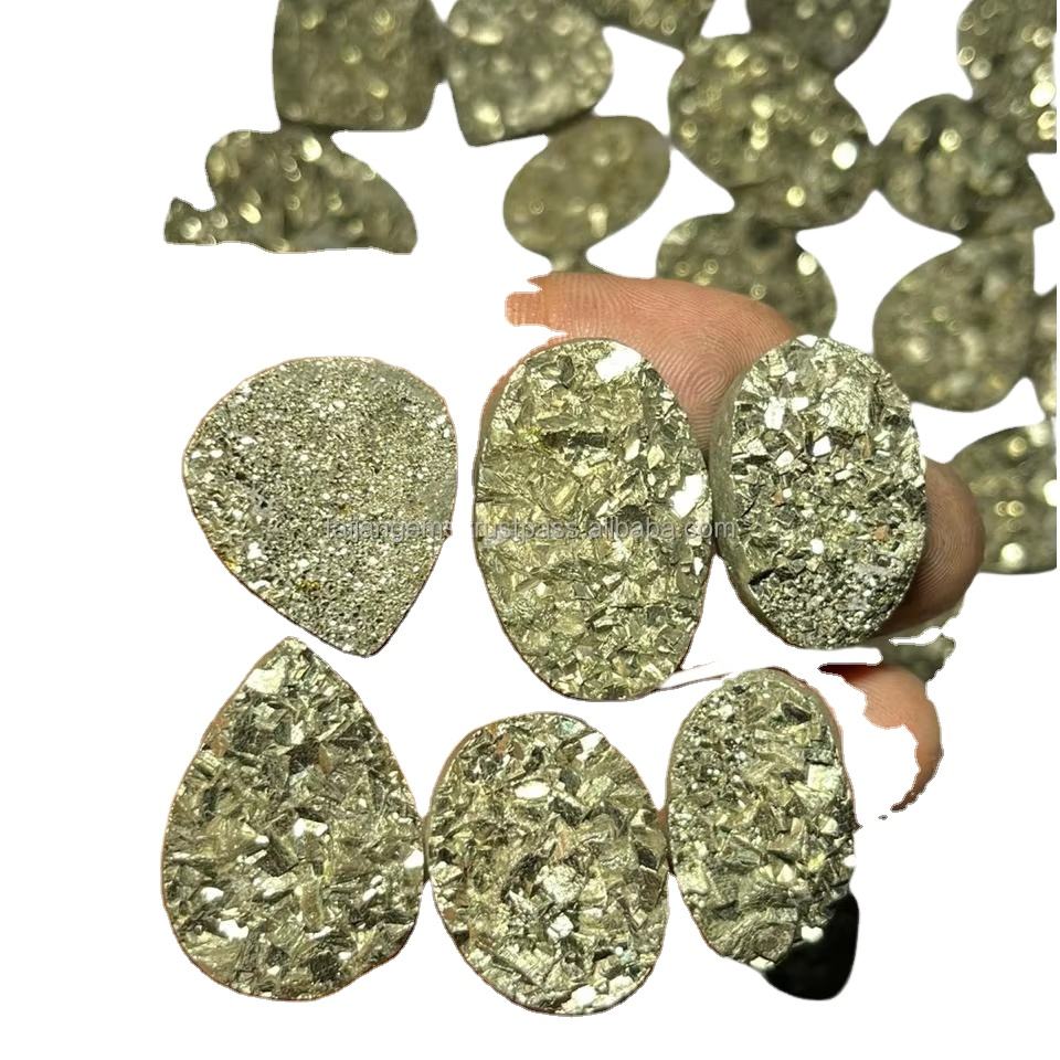 เครื่องประดับทำมือสุดหรูจากธรรมชาติ-คริสตัลไพไรต์ทรงหัวใจแบบคาโบชอง ครึ่งแบนด้านหลัง อะไหล่คุณภาพสูงสำหรับสร้อยข้อมือ สีขายดี