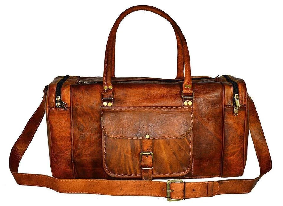 กระเป๋าดัฟเฟิลกระเป๋าเดินทางหนังแท้ทำมือสุดหรูสำหรับผู้ชายกระเป๋าเดินทางสำหรับยิมค้างคืน