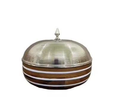 หม้อปรุงอาหารโลหะแบบแฮนด์เมดสุดหรูพร้อมขาตั้งไม้แม่มุกฝาปิดหม้อร้อนกันรั่วสำหรับงานแต่งงานและการจัดเลี้ยง