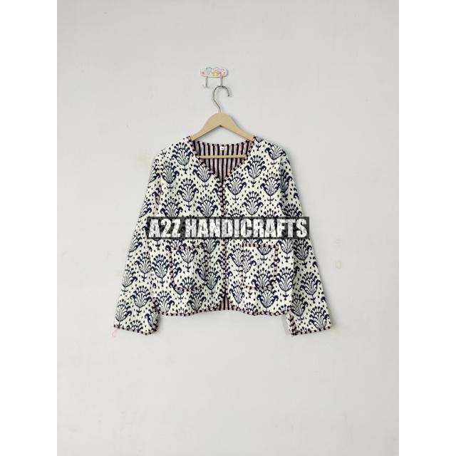 กิโมโนสั้นลายควิลท์หรูหราทำด้วยมือสำหรับผู้หญิงแจ็คเก็ตแบบอินเดียกลับด้านได้ผ้าฝ้ายสวมใส่ได้ทั้งสองด้านสำหรับใส่ในบ้าน