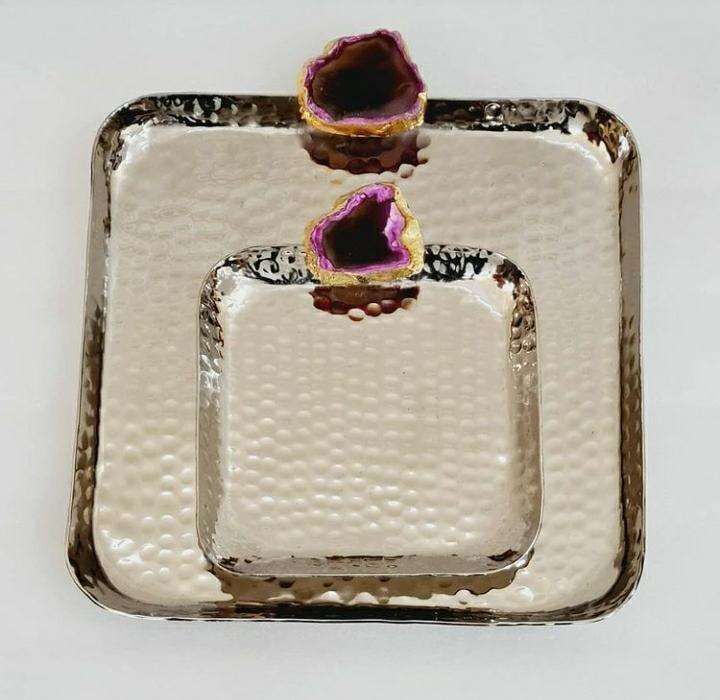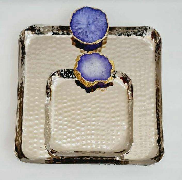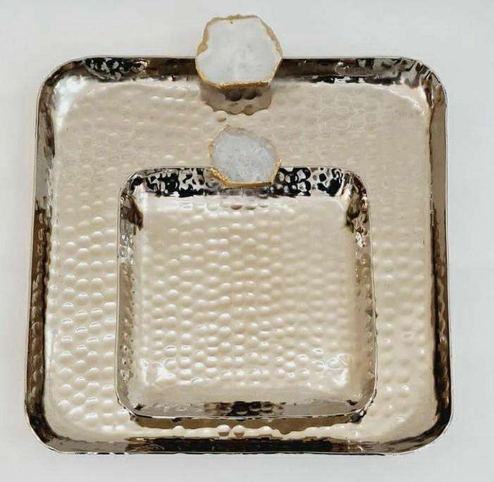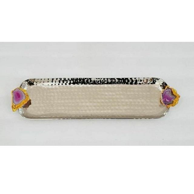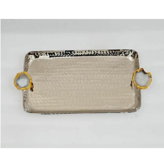 ถาดเสิร์ฟช็อคโกแลตทำด้วยมือสุดหรูด้ามจับโมราสแตนเลสสีเงินแบบแข็งสำหรับตกแต่งโต๊ะในบ้าน