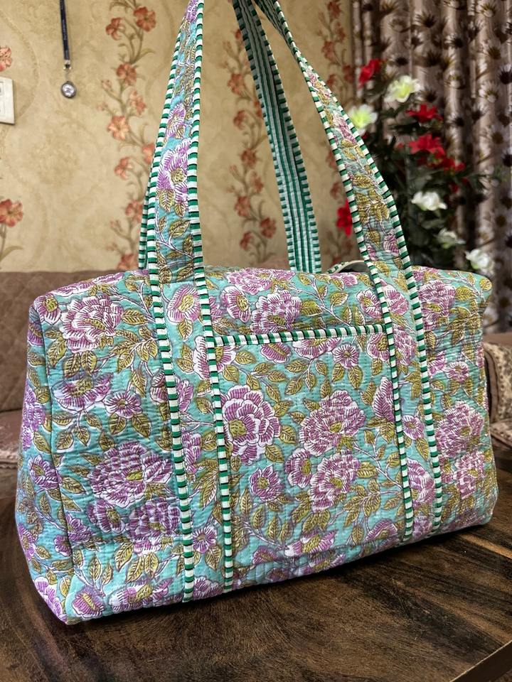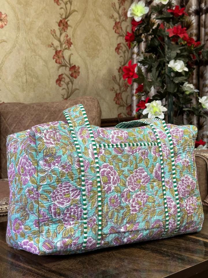 กระเป๋าทรงดัฟเฟิลพิมพ์ลายดอกไม้ทำด้วยมือความจุขนาดใหญ่ทนทานกระเป๋าเดินทางสุดสัปดาห์