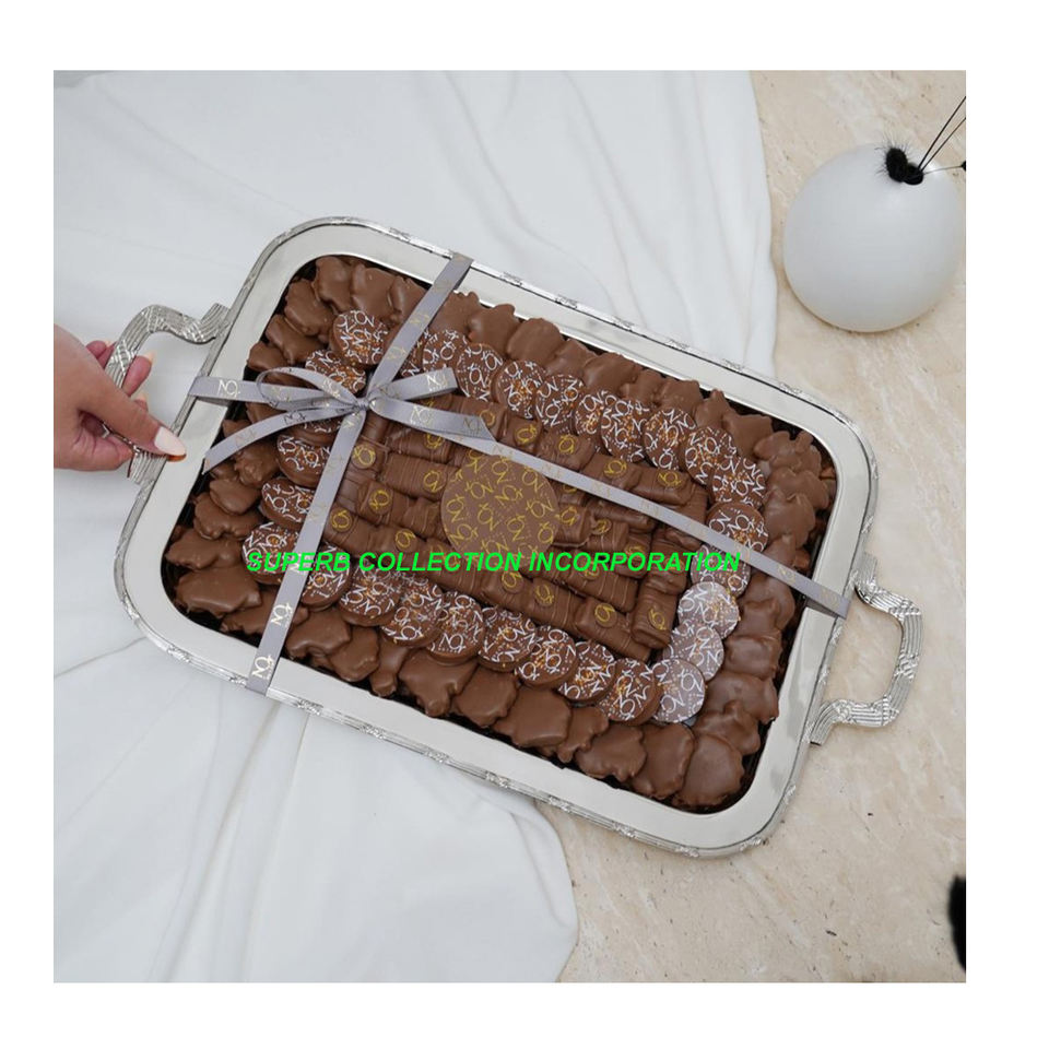 ถาดสแตนเลสตกแต่งช็อคโกแลตทำด้วยมือสุดหรู