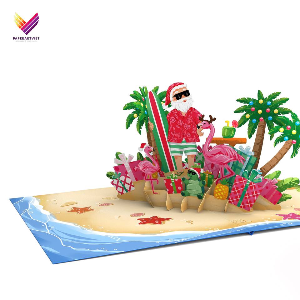 การ์ดคริสต์มาสแบบป๊อปอัพซานตาคลอสพิมพ์ยูวีสุดหรูทำด้วยมือกระดาษงานฝีมือทนทานของขวัญคริสต์มาสของขวัญอวยพรตกแต่ง