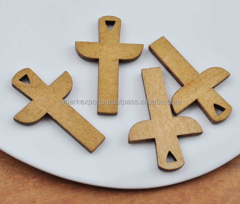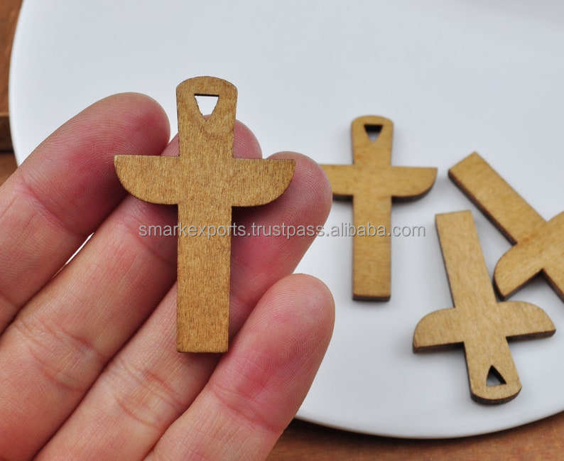 ทำด้วยมือ MDF ตัดข้ามสร้อยคอธรรมชาติเสร็จสำหรับโครงการงานฝีมือของขวัญโบสถ์และอุปกรณ์เสริมที่นับถือ