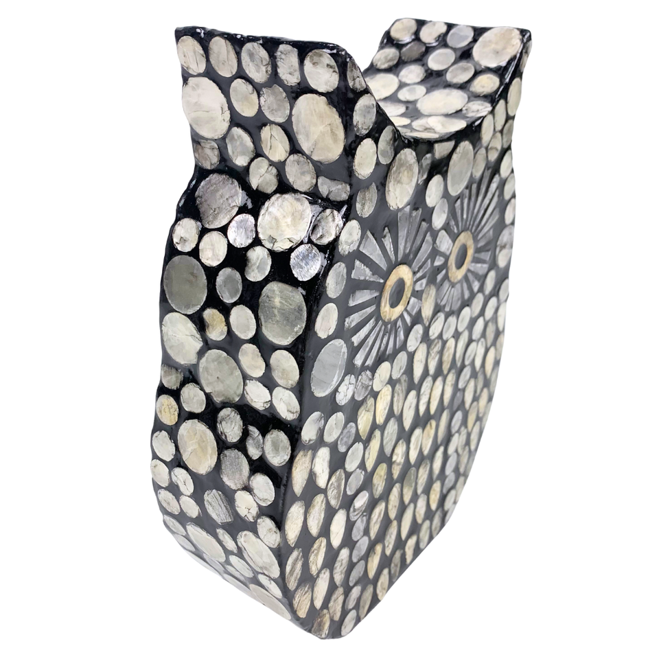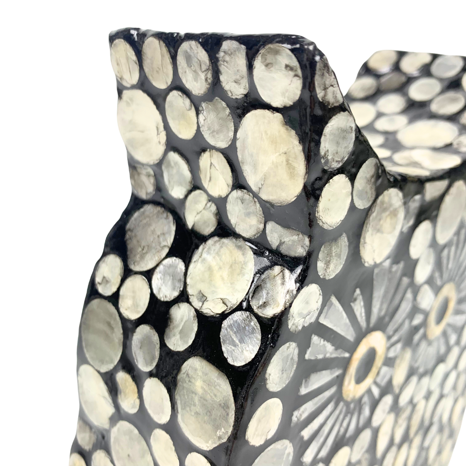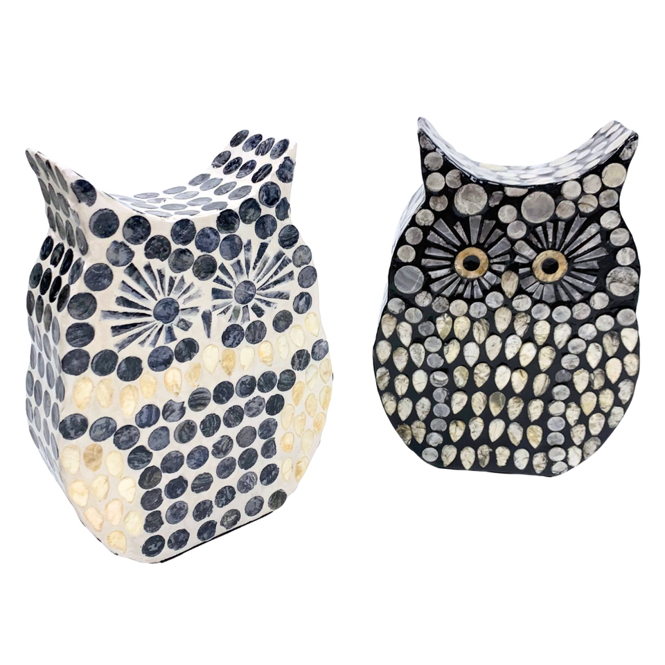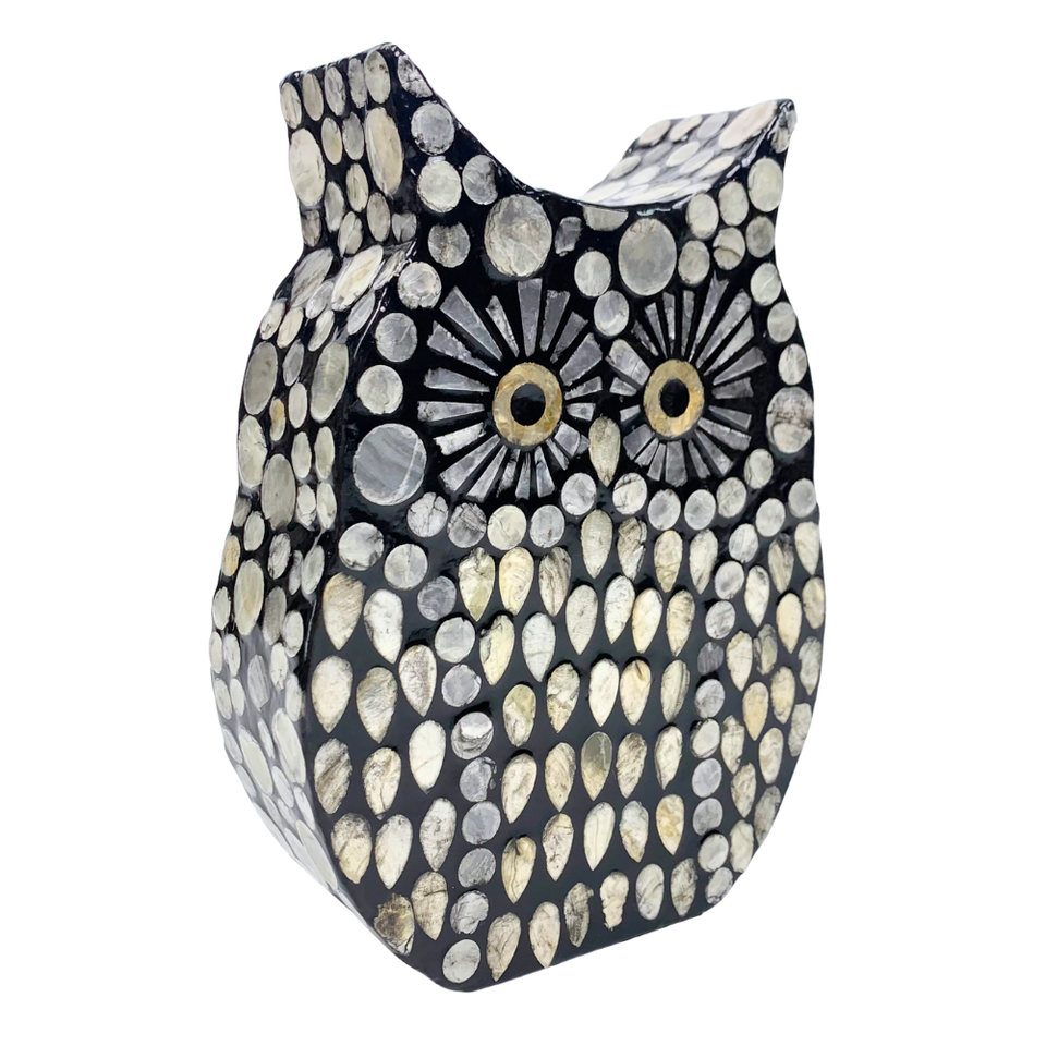 รูปปั้นนกฮูก MDF ทำด้วยมือพร้อม capiz แบบฝังหยดน้ำตารูปปั้นสัตว์สีดำสำหรับตกแต่งฮาโลวีนและตกแต่งบ้าน