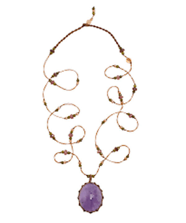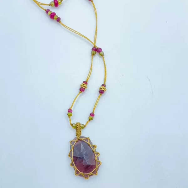 จี้รูปลูกแพร์ทำมือจากเชือกมัดแบบมาคราเม่ สีม่วง ประดับด้วยลูกปัดและไข่มุกน้ำจืด ผสมพลอยหลากชนิด สไตล์โบโฮ เครื่องประดับแฮนด์เมดสำหรับผู้หญิง