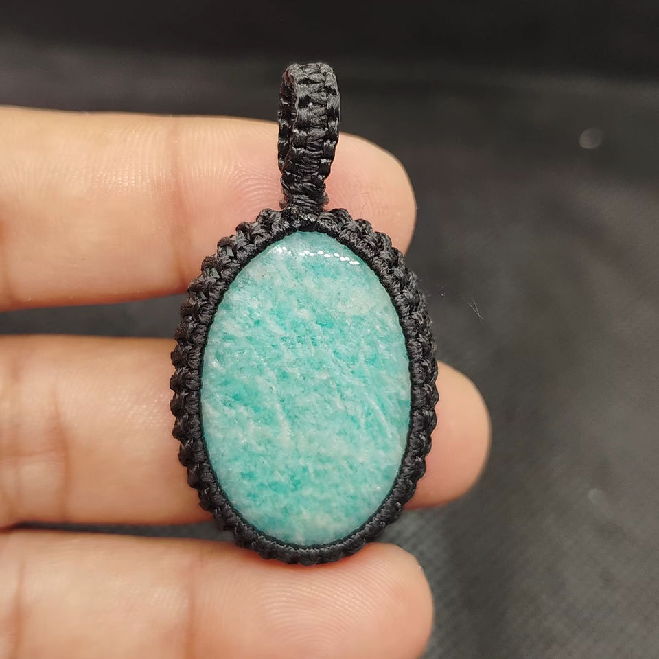 สร้อยคอแต่งงานคริสเตียนทำมือแบบมาคราเม่ วินเทจ ประดับด้วยอะมาโซไนต์และแจสเปอร์ สไตล์โบฮีเมียน ถักด้วยด้ายไหม
