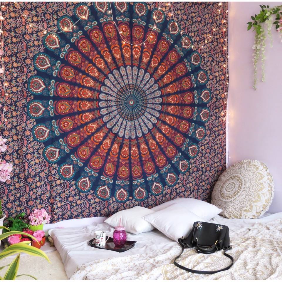 Handmade Macrame Hanging Tapestry HMS 92\" X 84\" Orange Purple Blue Mandala Design Woven Cotton for Home Decor Wall Hanging