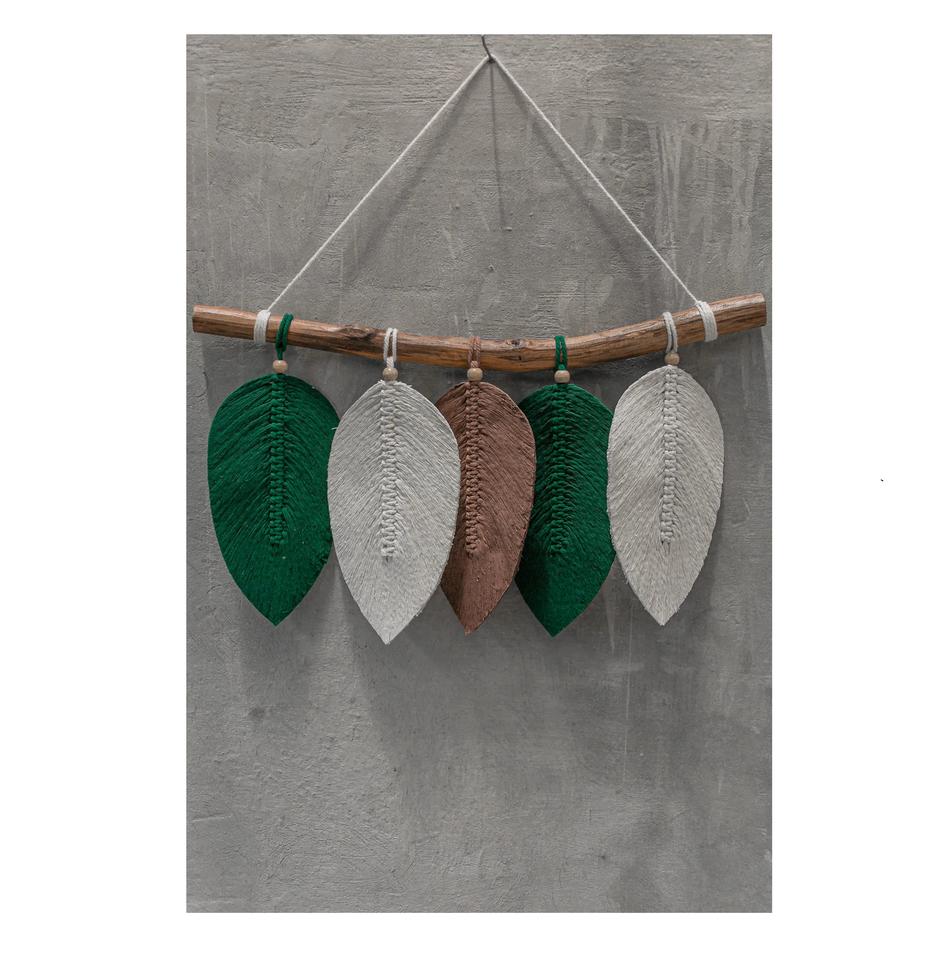 ที่แขวนผนังลายใบแมคคราเม่สีครีมและสีขาวสไตล์เก๋ไก๋สไตล์อาร์ตเดคโคที่สมบูรณ์แบบสำหรับห้องนอนหรือห้องนั่งเล่น
