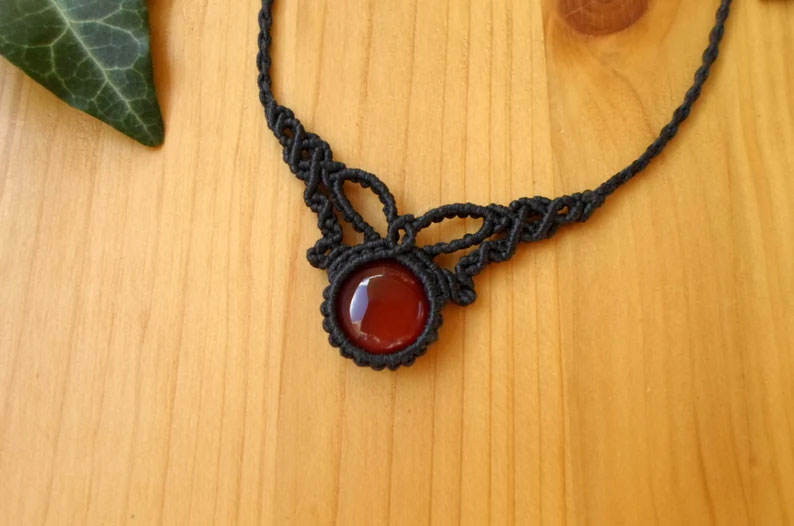 สร้อยคอทำมือจากเชือกถักมาคราเม่ พร้อมจี้คาร์เนเลียนหินธรรมชาติ เชือกสีดำปรับได้ เครื่องประดับเพื่อสุขภาพ