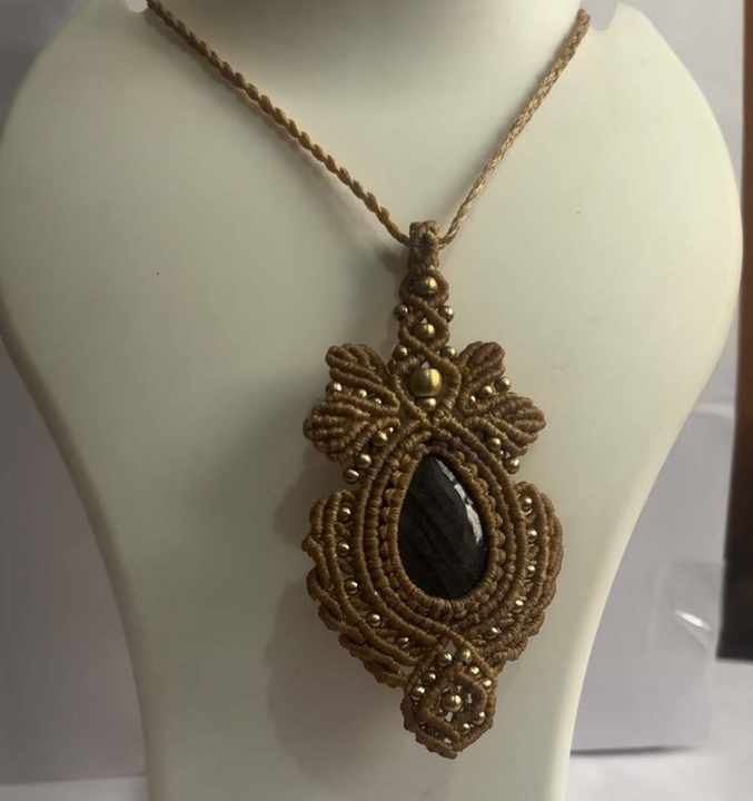 สร้อยคอทำมือจากเชือกถักมาคราเม่พร้อมจี้หินสีดำ, เครื่องประดับเชือกปรับได้สไตล์โบโฮ, สร้อยคอจี้มาคราเม่สไตล์ชนเผ่าแบบวินเทจ