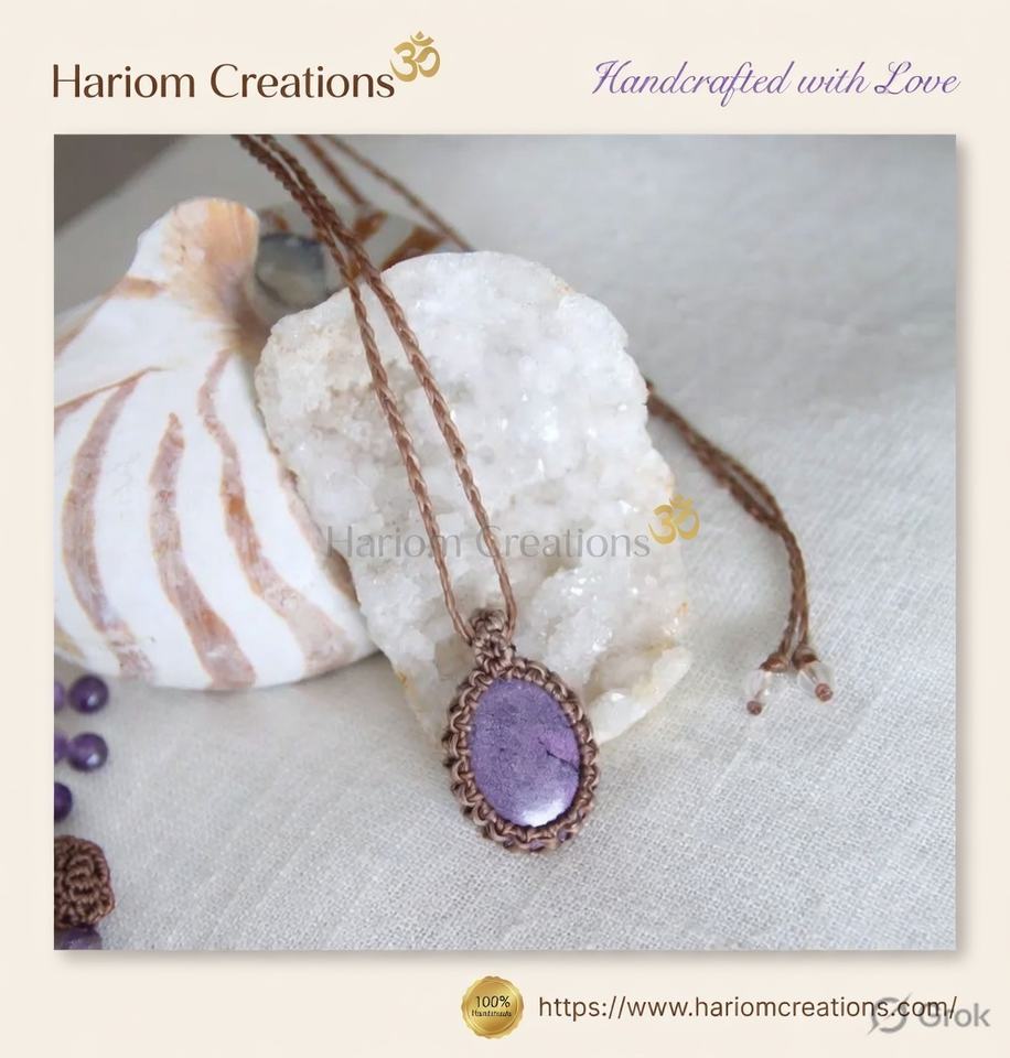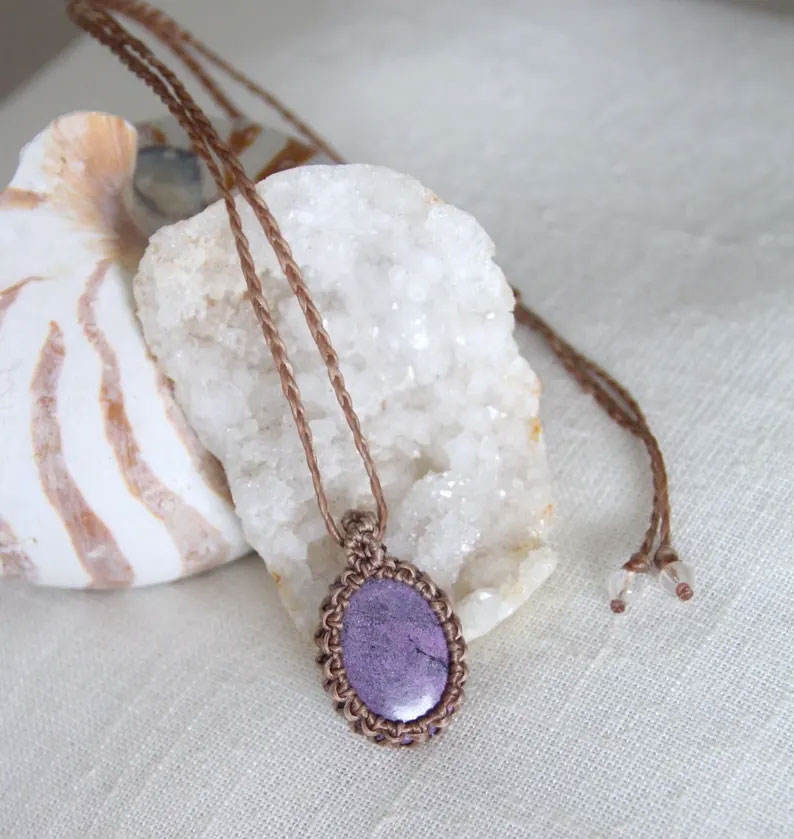 สร้อยคอจี้หินโรโดไนต์ทำมือสไตล์มาคราเม่ แบบโบโฮธรรมชาติ ช่วยบำบัดรักษา สายสีน้ำตาลปรับได้