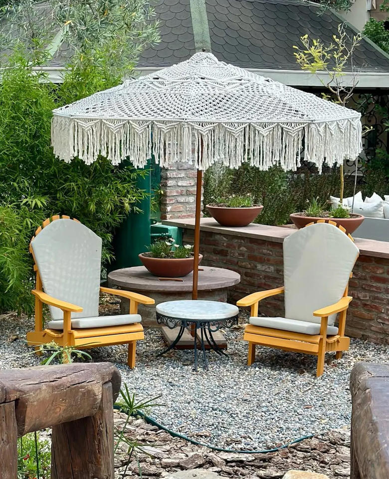 ร่มมาคราเม่โบโฮทำมือพร้อมด้ามไม้ ร่มชายหาดพับได้ เส้นผ่านศูนย์กลางมากกว่า 140 ซม. ของตกแต่งสวนกลางแจ้ง