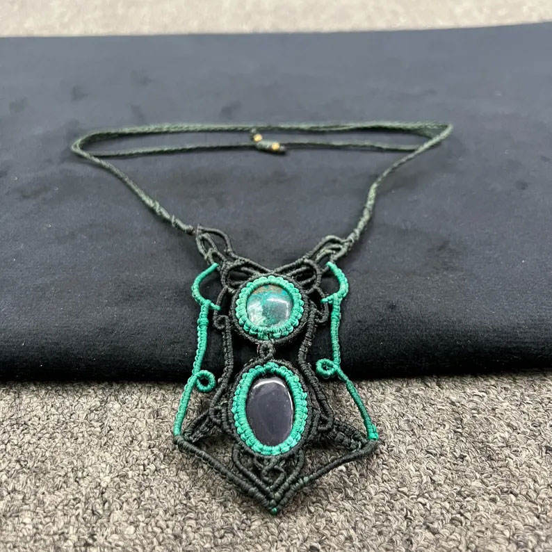 สร้อยคอจี้มาลาไคต์ทำมือ เชือกสีแดง หินมาลาไคต์สีเขียว พลอยธรรมชาติ เครื่องประดับคริสตัลบำบัดสไตล์โบโฮ
