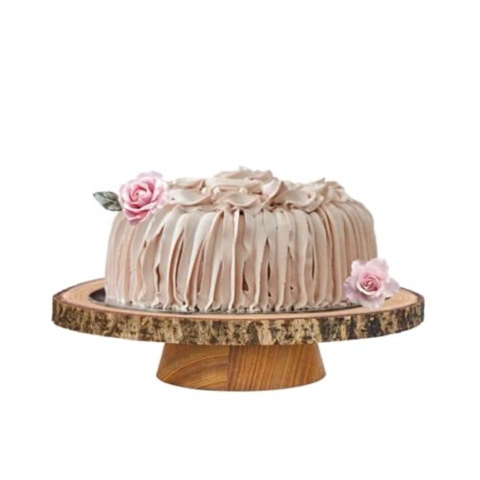 ฐานวางเค้กไม้มะม่วงทำมือ พร้อมฐานกลมเคลือบลายดอกไม้ สำหรับจัดแสดงขนมหวานในงานแต่งงาน