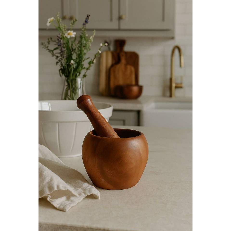 RR ENTERPRISES ครกและสากไม้มะม่วงทำมือ เครื่องบดสมุนไพรธรรมชาติ