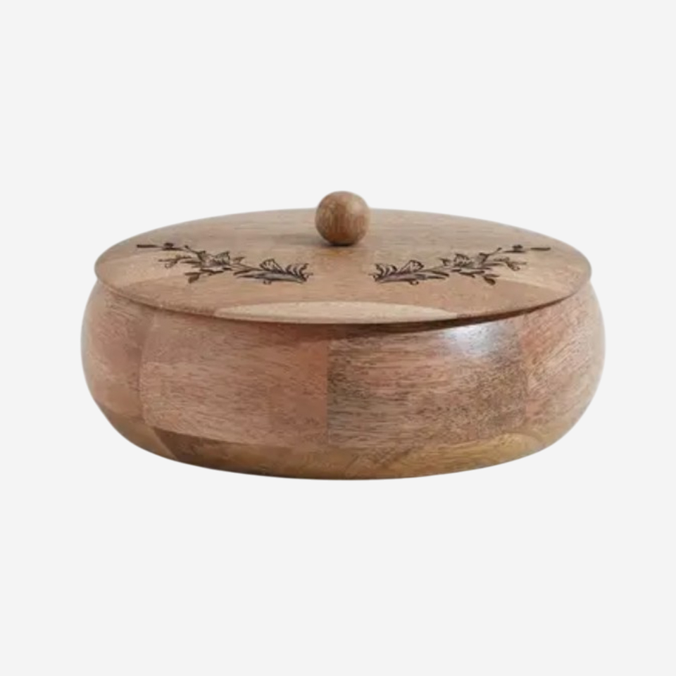 กล่องชาปาติไม้มะม่วงทำด้วยมือพร้อมดีไซน์ดอกไม้สวยงาม