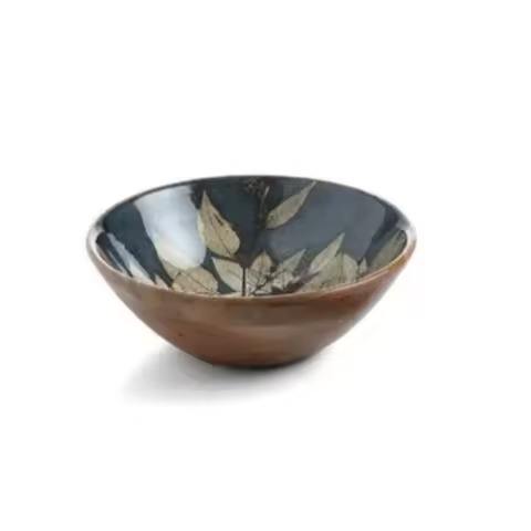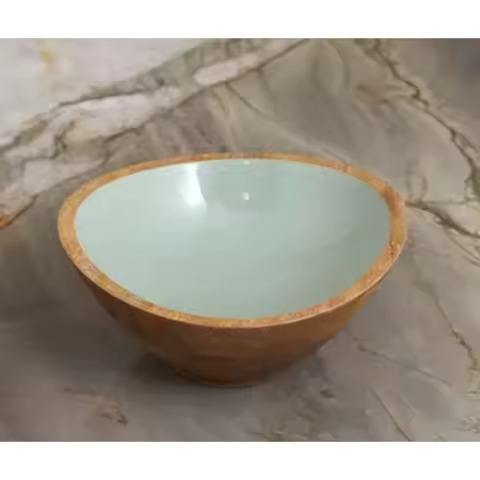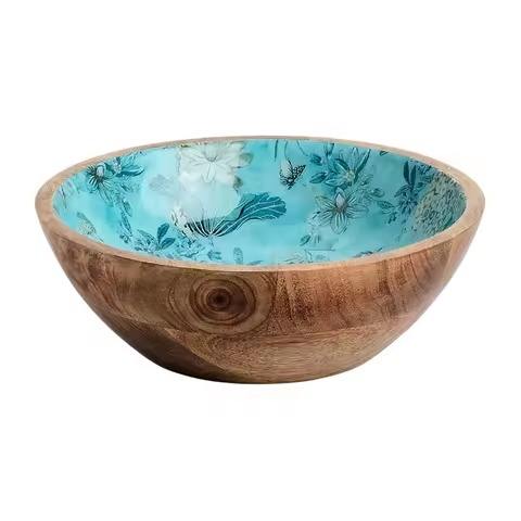 ชามสลัดไม้มะม่วงทำมือ พร้อมลายเคลือบด้านใน ทรงกลม ผิวธรรมชาติ สำหรับใช้ในครัวสมัยใหม่