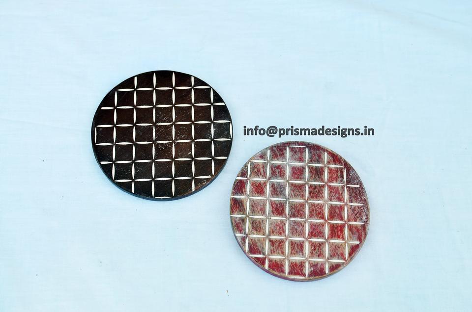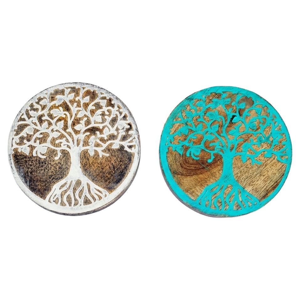 แผ่นรองแก้วไม้มะม่วงทำมือลายต้นไม้แห่งชีวิต สไตล์โบโฮลายดอกไม้ ชุดแผ่นรองแก้วทรงกลม แผ่นรองโต๊ะไม้แบบเรียบง่ายสำหรับตกแต่งบ้าน ของขวัญแผ่นรองแก้ว