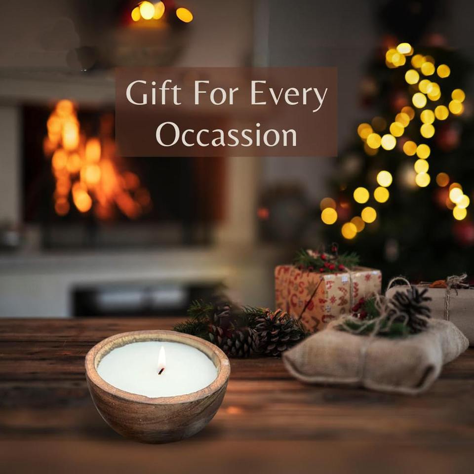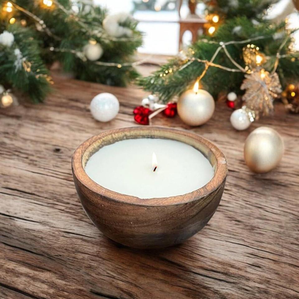 เทียนหอมในชามไม้มะม่วงทำมือ ของขวัญสุดหรูสำหรับงานแต่งงาน ตกแต่งบ้าน ตกแต่งโต๊ะอาหาร ของประดับตกแต่งกลางโต๊ะ ฉลองวันหยุด