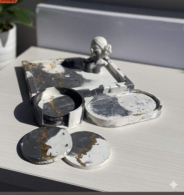 ชุดจานรองแก้วหินอ่อนพิมพ์ลาย UV ทันสมัย ทนทาน ทำด้วยมือ ป้องกันความร้อน สำหรับโต๊ะกาแฟ ห้องครัว บาร์