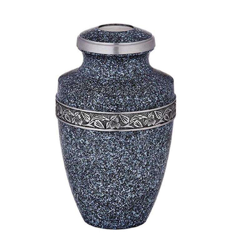 โกศบรรจุอัฐิทำมือ ลายหินอ่อน พร้อมลายสลักเถาวัลย์สีเงิน สำหรับบรรจุอัฐิมนุษย์ โกศโลหะจากอินเดีย