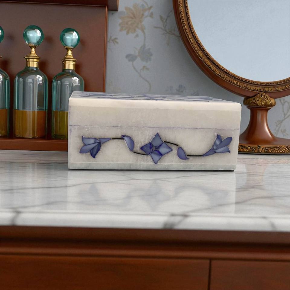 กล่องเก็บเครื่องประดับหินอ่อนทำด้วยมือ | กล่องของขวัญหินอ่อนฝังหินสำหรับตกแต่งบ้านและสำนักงาน