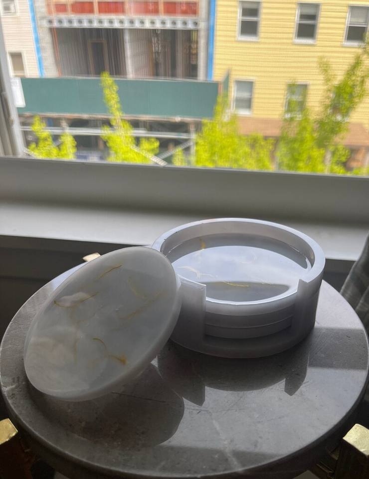ชุดถาดรองแก้วทำจากเรซินรอนหินอ่อนทำด้วยมืออุปกรณ์เครื่องดื่มที่มีสไตล์ทนทานของขวัญที่สมบูรณ์แบบสำหรับบ้าน