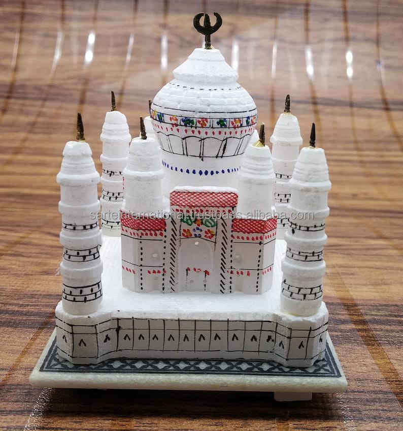 หินอ่อนทัซมาฮาลจำลองทำด้วยมือรูปปั้นหินหรูหราแกะสลักที่ซับซ้อนรูปแบบของที่ระลึกในการตกแต่งขายส่ง