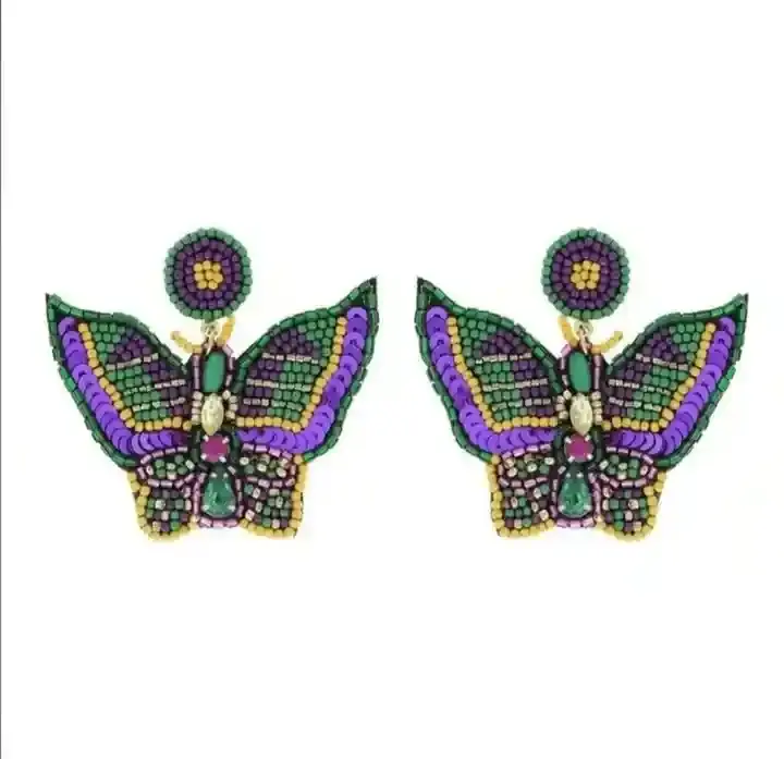 ต่างหูห้อยประดับลูกปัดหลากสีสันงานปักมือสำหรับงานมาร์ดิกราส์ เครื่องประดับแฟชั่นโดย MD HANDICRAFTS