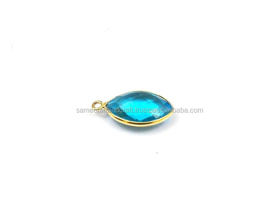 ตัวเชื่อมแบบมาร์คีส์ทำมือ ชุบทอง 18K แบบสองห่วง สำหรับพลอยควอตซ์สีน้ำเงินขนาด 9x15 มม. อุปกรณ์ตกแต่งอัญมณี สไตล์ทันสมัย