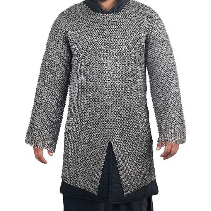 Hainmail chainmail shirt ยุคกลาง hauuberk 09 MM แบน riveted เกราะโลหะเคลือบน้ำมันแบบเต็มแขนและยาว