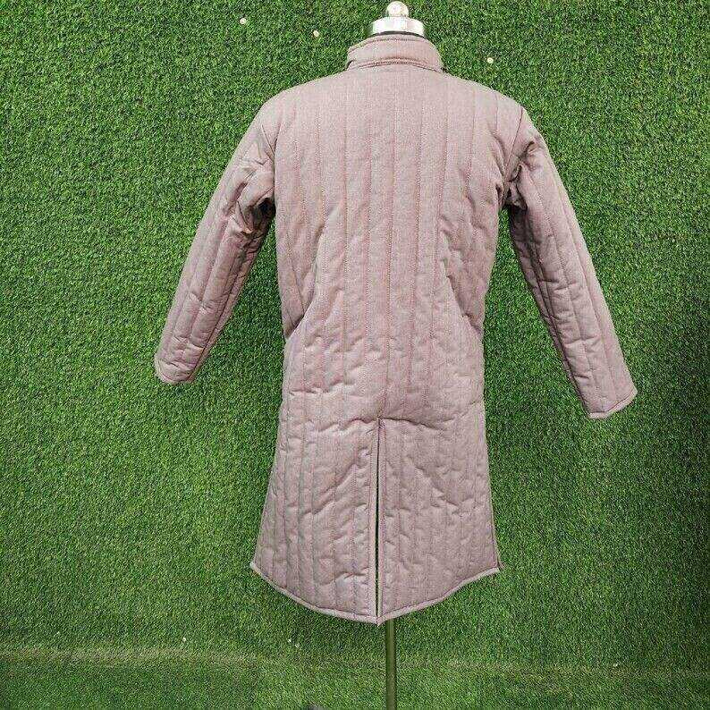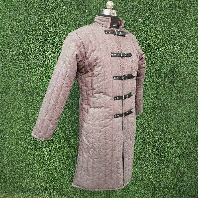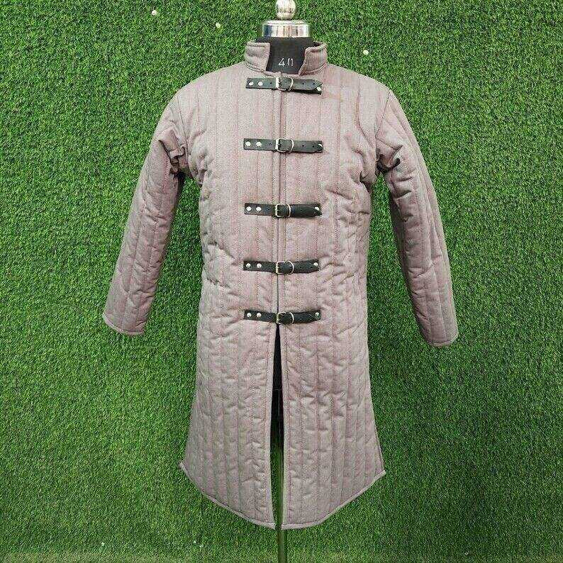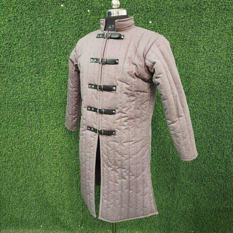 เสื้อกั๊กแกมเบสันยุคกลางทำมือ แขนยาว ผ้าฝ้าย แต่งสายหนัง บุนวม แจ็คเก็ตอคีตัน สำหรับอัศวิน ฮาโลวีน อีสเตอร์