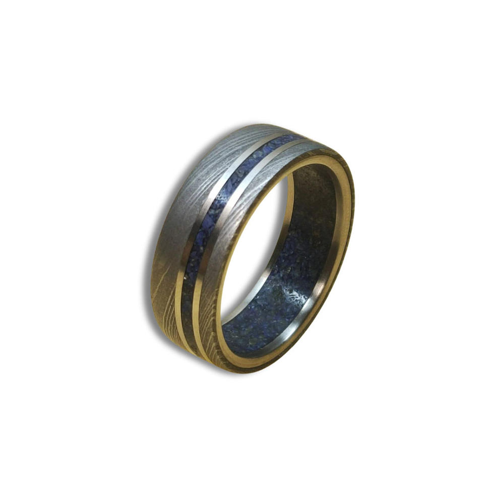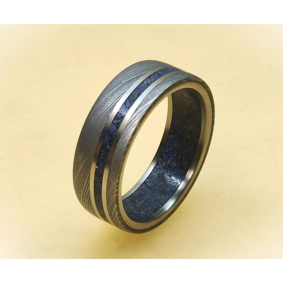 แหวนเหล็กดามัสกัสทำมือสำหรับผู้ชาย ดีไซน์ฟอร์จโทนสีเข้ม แหวนแต่งงานผู้ชาย แหวนเหล็กดามัสกัส