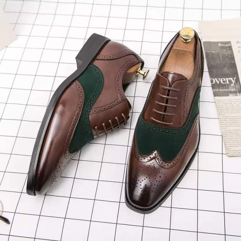 รองเท้าหนังแท้ผู้ชายทำมือ กันน้ำ สไตล์ทางการ - ปรับแต่งได้ หัวกลม ผูกเชือก สวมใส่สบาย เหมาะสำหรับธุรกิจ
