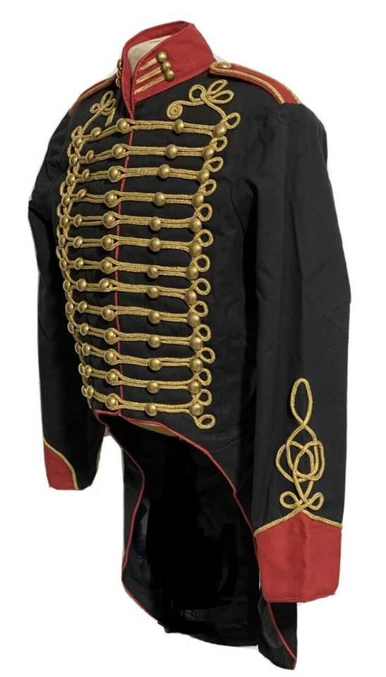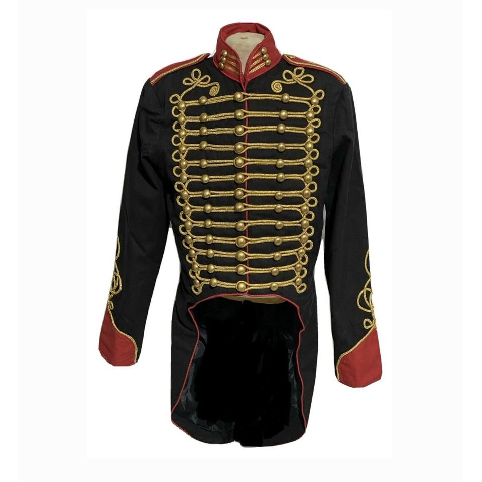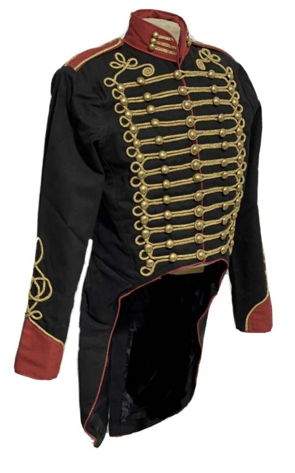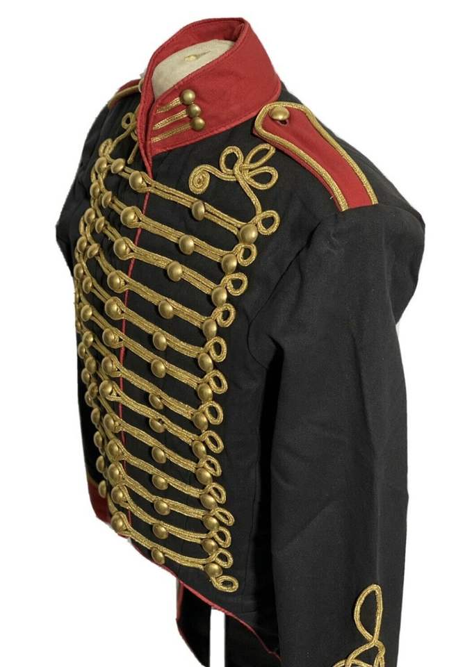 แจ็กเก็ตผ้านโปเลียนฮัสซาร์ทำด้วยมือสีดำสำหรับบุรุษเสื้อแจ็กเก็ตปักลายโบราณทำจากผ้าวูลสไตล์นโปเลียน
